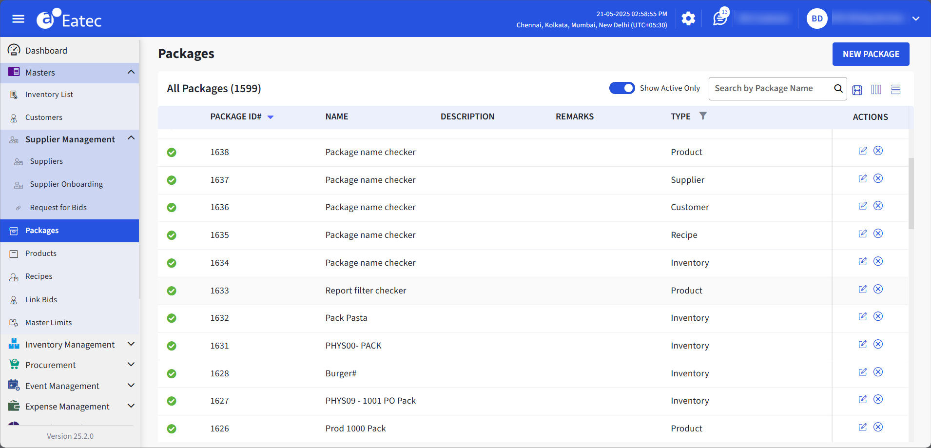 Users can perform the following functions under Packages:
